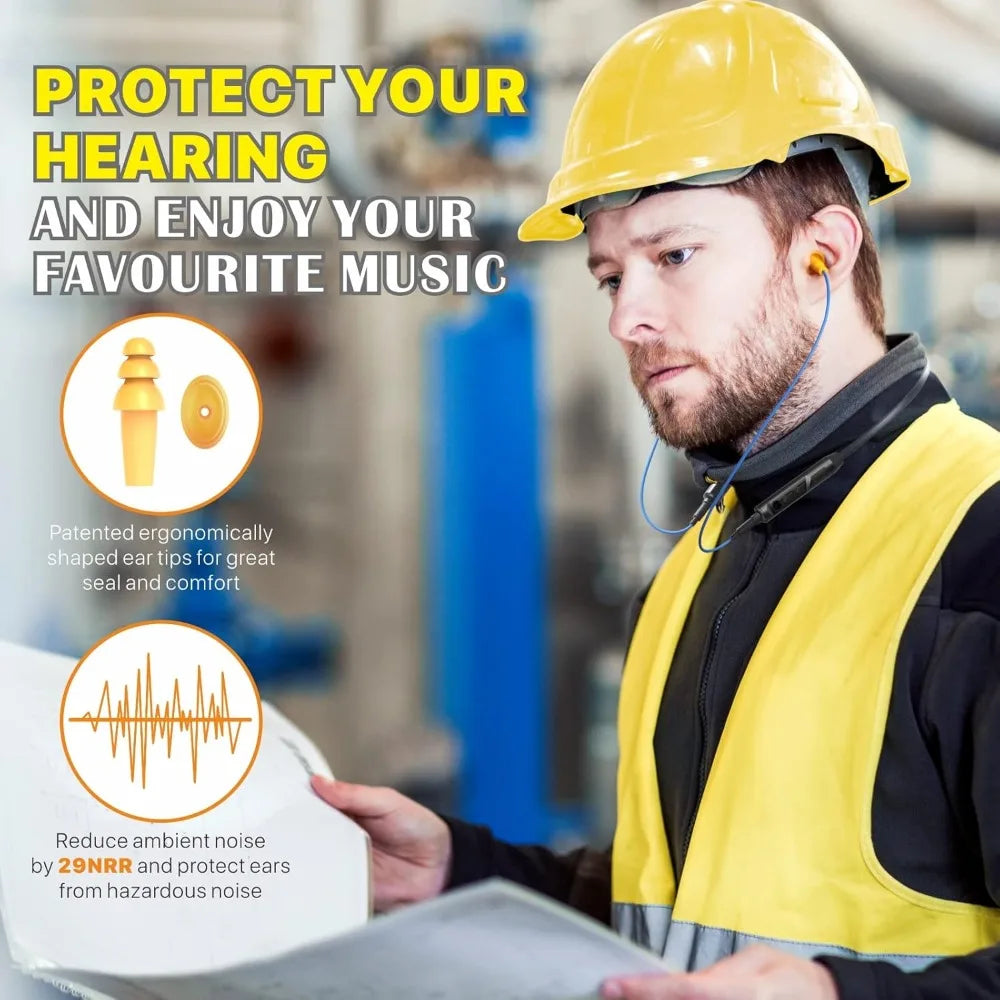 Bluetooth Neckband Earplugs, 29dB Noise Reduction, 19+ Hr Battery, Safety Earbuds for Lawn Mowing/DIY, Includes Replacement Buds