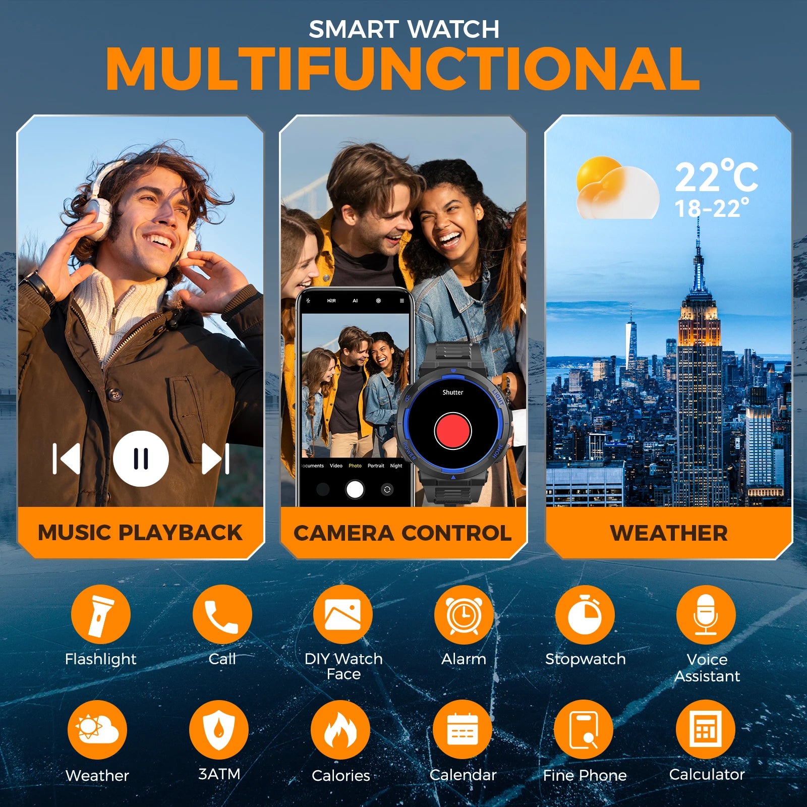 Stay connected with the voice assistant, receive notifications, and monitor weather updates right on your wrist.