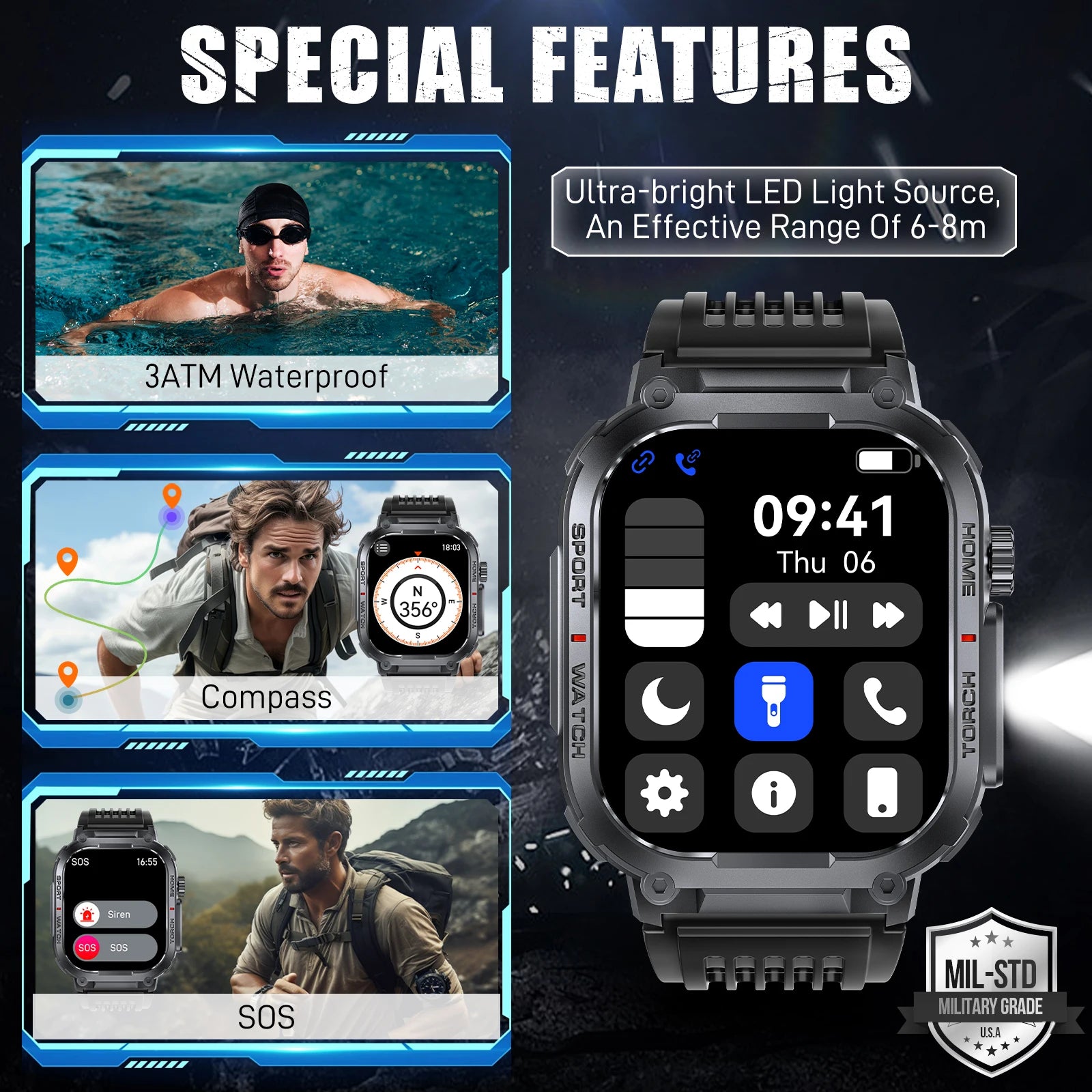 EIGIISMen's Military Smart Watch is designed for outdoor sports and adventure enthusiasts! The EIGIISwaterproof smartwatch has a 3 ATM waterproof rating, so you can even swim with it.