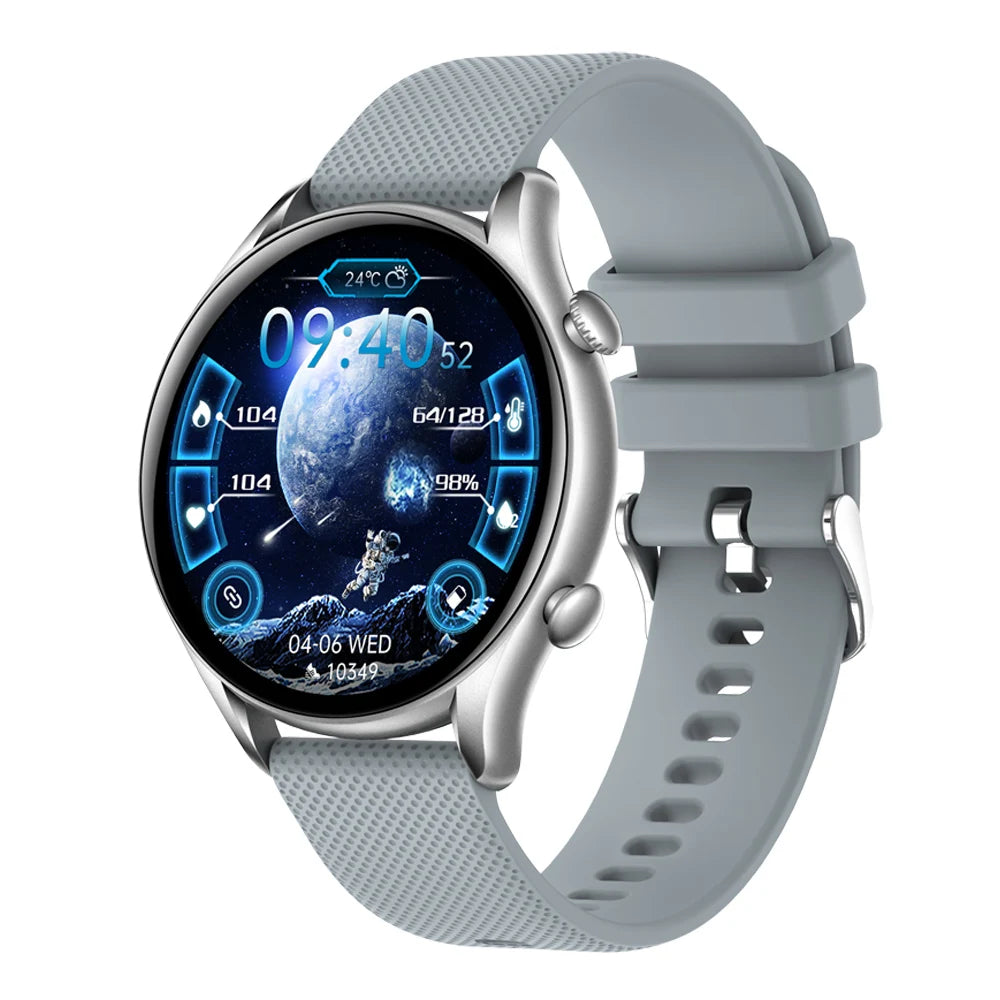 1.32 inch HD resolution,360*360 pixel,Bluetooth calling,full screen touch, heart rate, blood oxygen, blood pressure,sleep monitoring,female health,exercise record (step counting, distance, calorie calculation), multi sports mode, weather,message push, alarm clock,stopwatch, timer, camera control, music control.