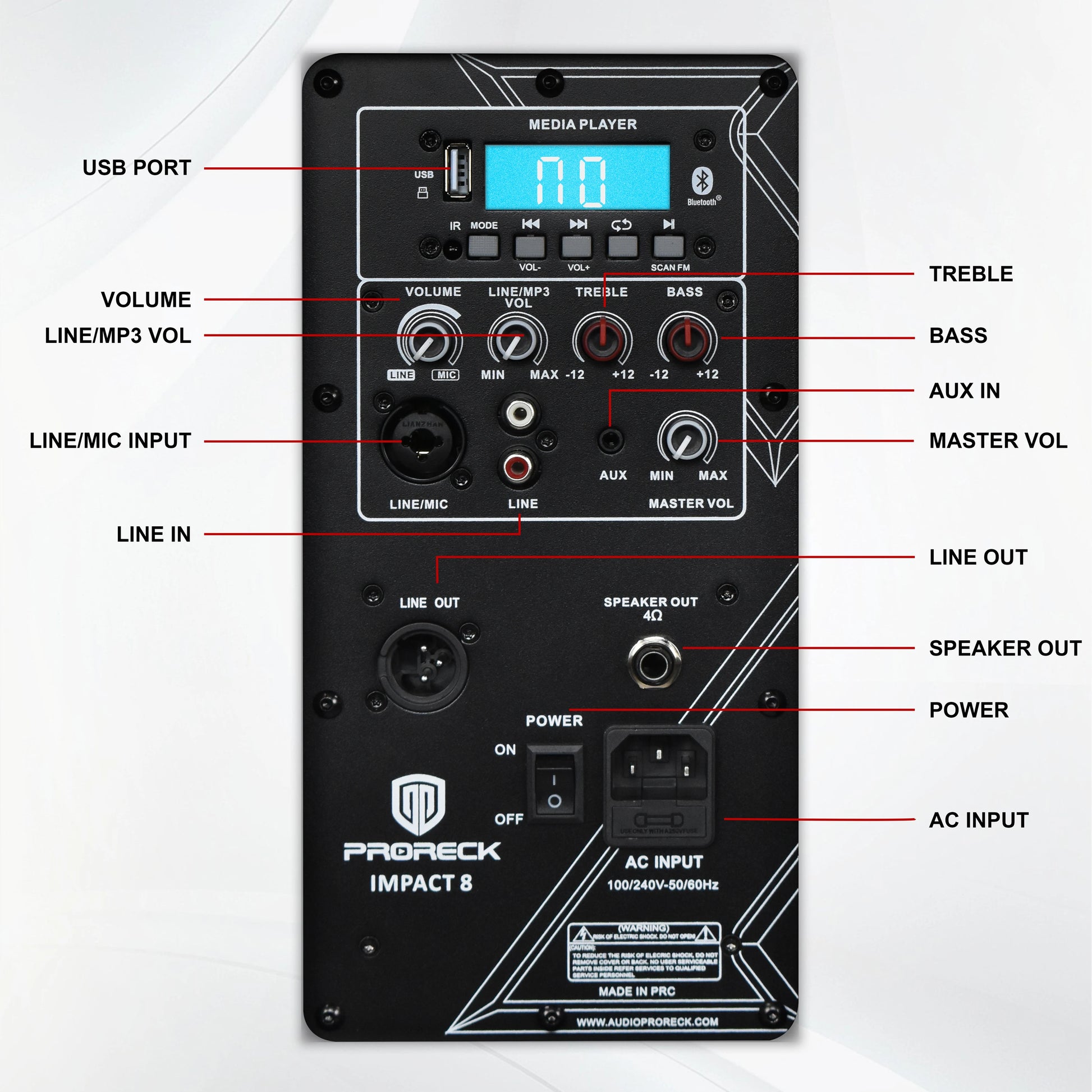 🎛️ Professional Control Panel: Proreck IMPACT 8 Speaker have Separate volume controls for music/mic, Remote access to all main functions. Ideal for mobile entertainers and events.
