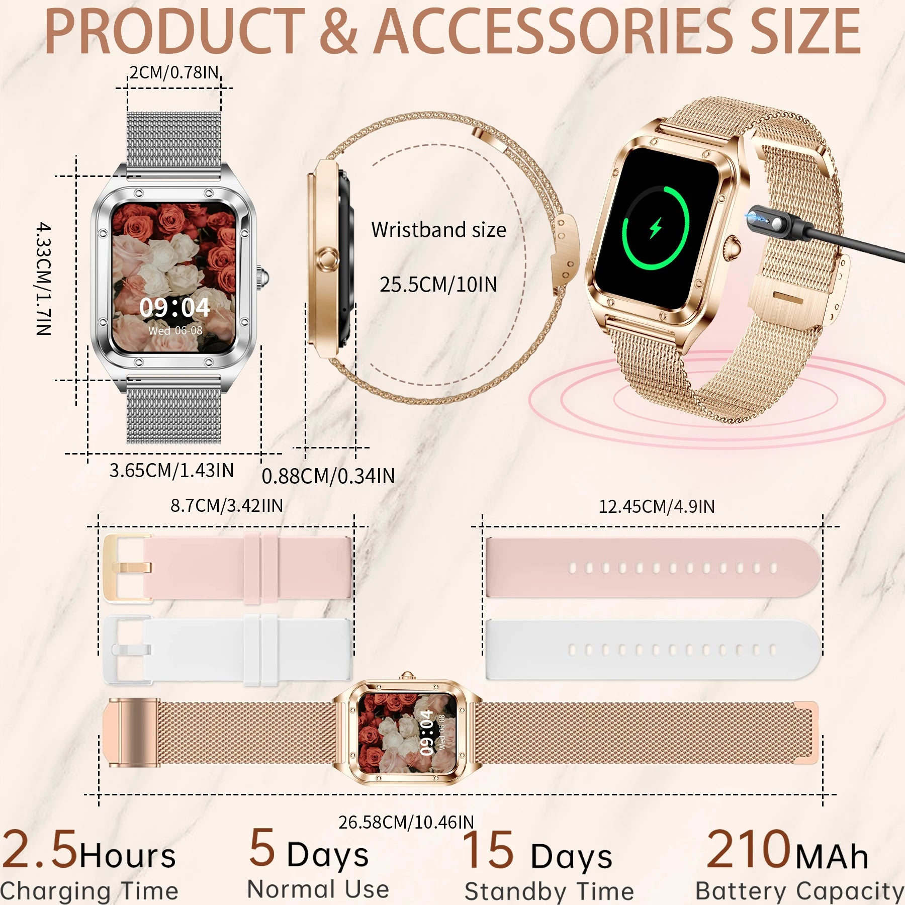 WOMEN SMART WATCH WITH TEXT AND CALL: Stay connected all the time with our smart watches for women, allowing you to answer/dial directly on your wrist. This android smart watch also supports message reminders and social media notifications. All notifications are displayed on your wrist and remind you through vibration, no need to take your phone out of pocket and never miss any important calls or messages, truly realizing a smart life on your wrist.